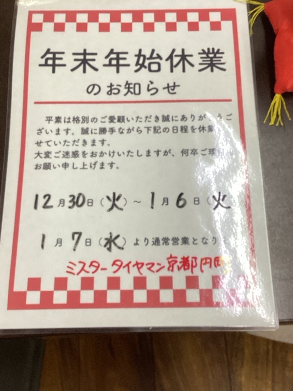 平素はミスタータイヤマン京都円町店をご利用頂き誠にありがとう御座います。